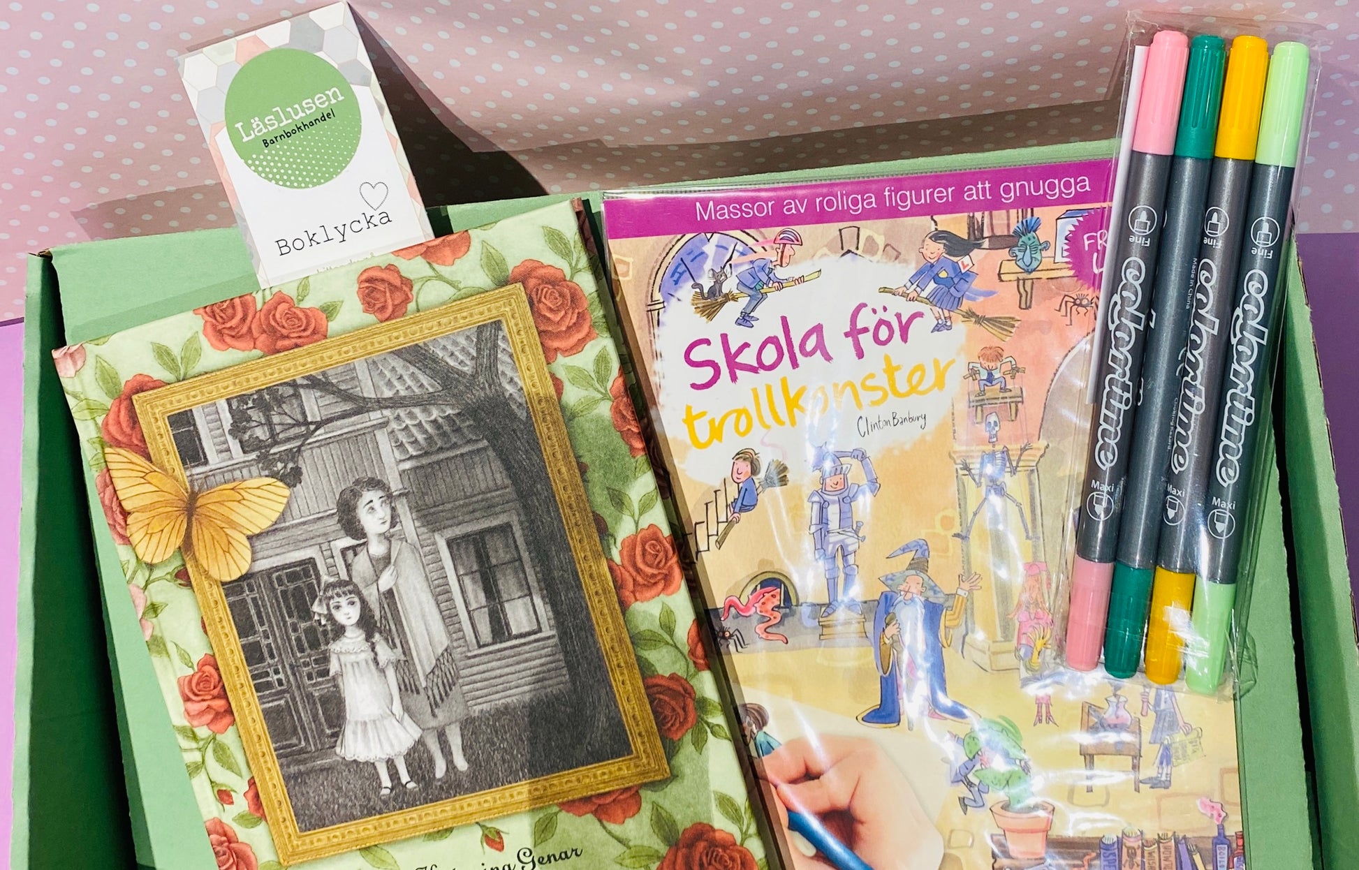 Bilderna är enbart exempel på tidigare boklådor vi skickat ut. Vi kommer att kontakta dig med frågor om vilken ålderskategori mellan 0-13 år som det gäller och hitta en bok som passar mottagaren!